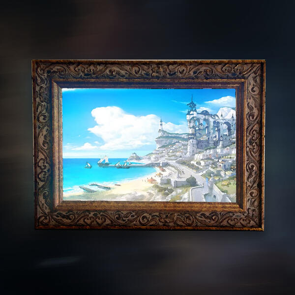 Rare Item"Jump through the painting and enjoy a beach holiday in the pocket dimension! Also available in 'A Cool Autumn's Day in the Black Shroud' and 'Riverside in Coerthas (Before the Fall)'."Safety is not guaranteed if harm comes to the painting.